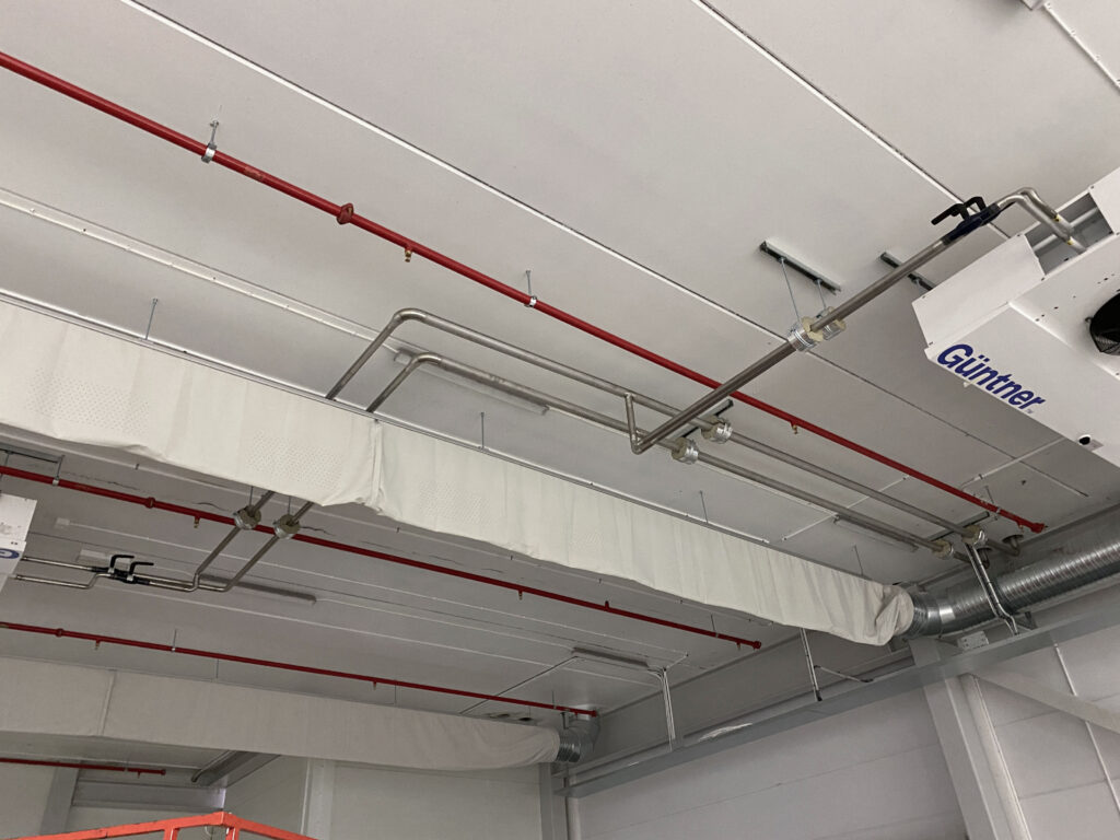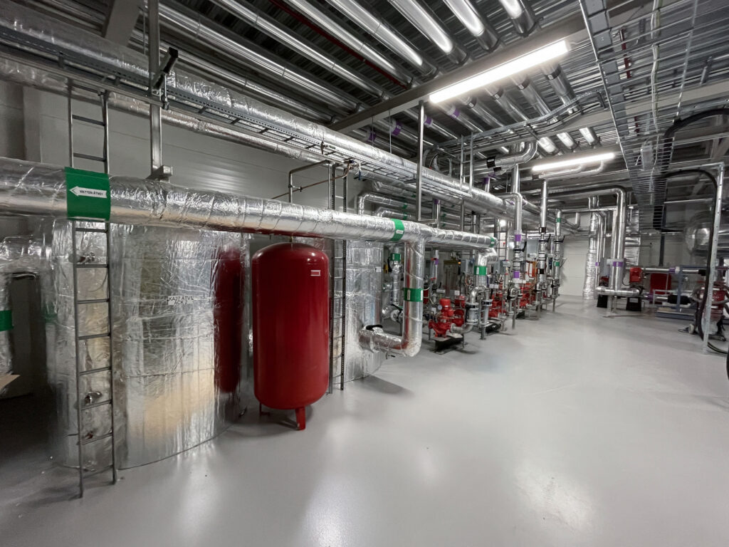 In 2021, we installed a comprehensive cooling and freezing system for Atria Sweden AB. The project included routing of pipelines along the roof and beneath the ceiling, installation and connection of 52 cooling and freezing units, and integration of the control room. We used stainless and black steel (P235GH) for ammonia and glycol systems, integrating them with existing lines. The project was completed on a tight schedule with full compliance to safety and quality standards.