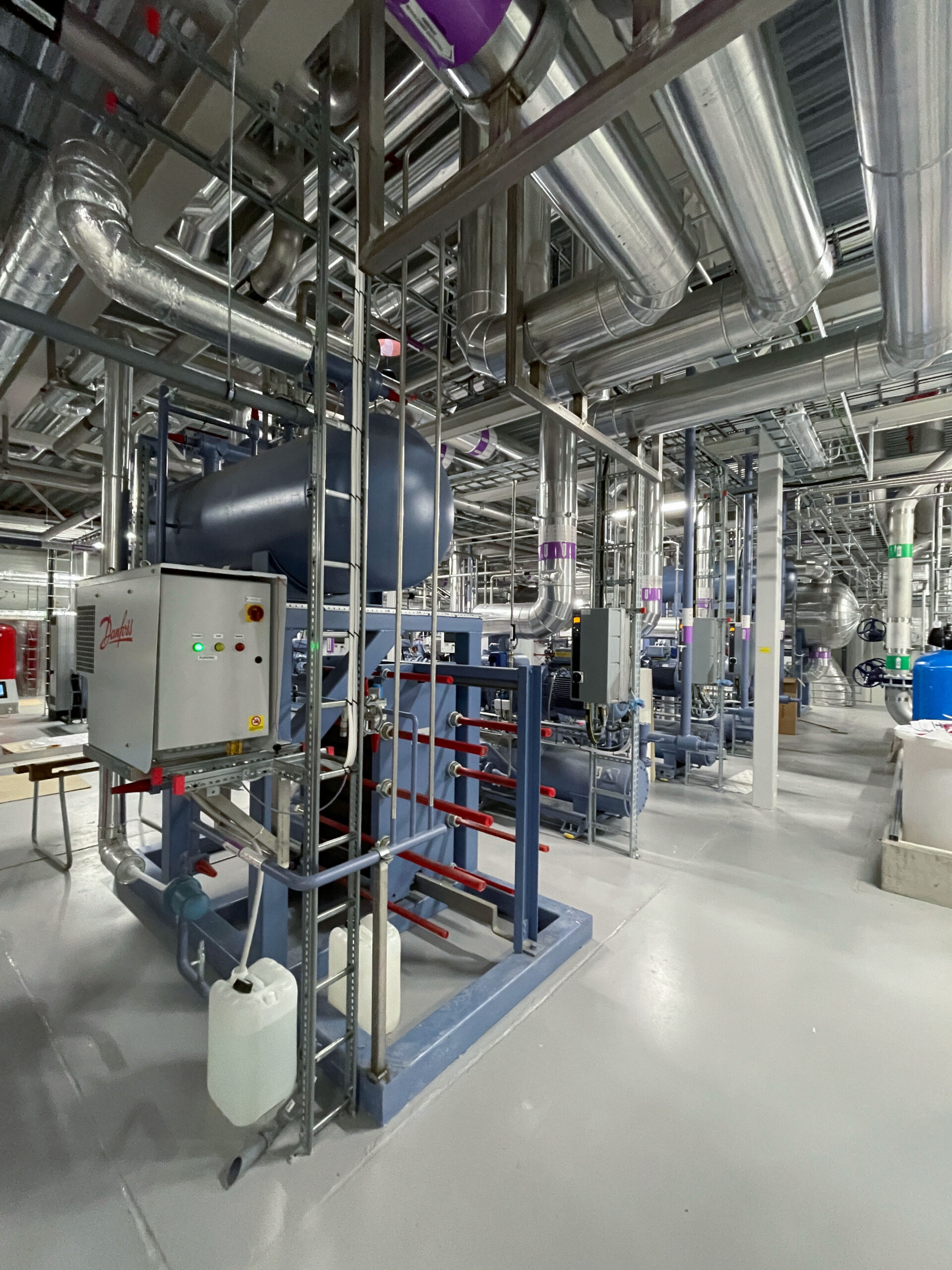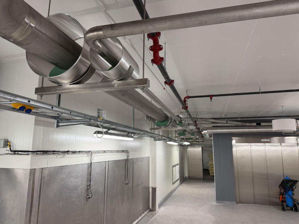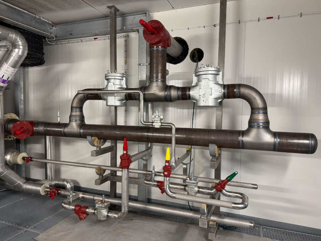 We completed the installation and welding of piping systems at the DAGAB facility in Landskrona, Sweden, including stainless steel glycol lines and steel ammonia pipes in the control room. The project featured insulated pipes and coolers ranging from 25 to 300 mm in diameter, along with necessary hangers and supports. 5% of welds were X-ray inspected to ensure quality. All work met strict safety and quality standards for ammonia and glycol systems.