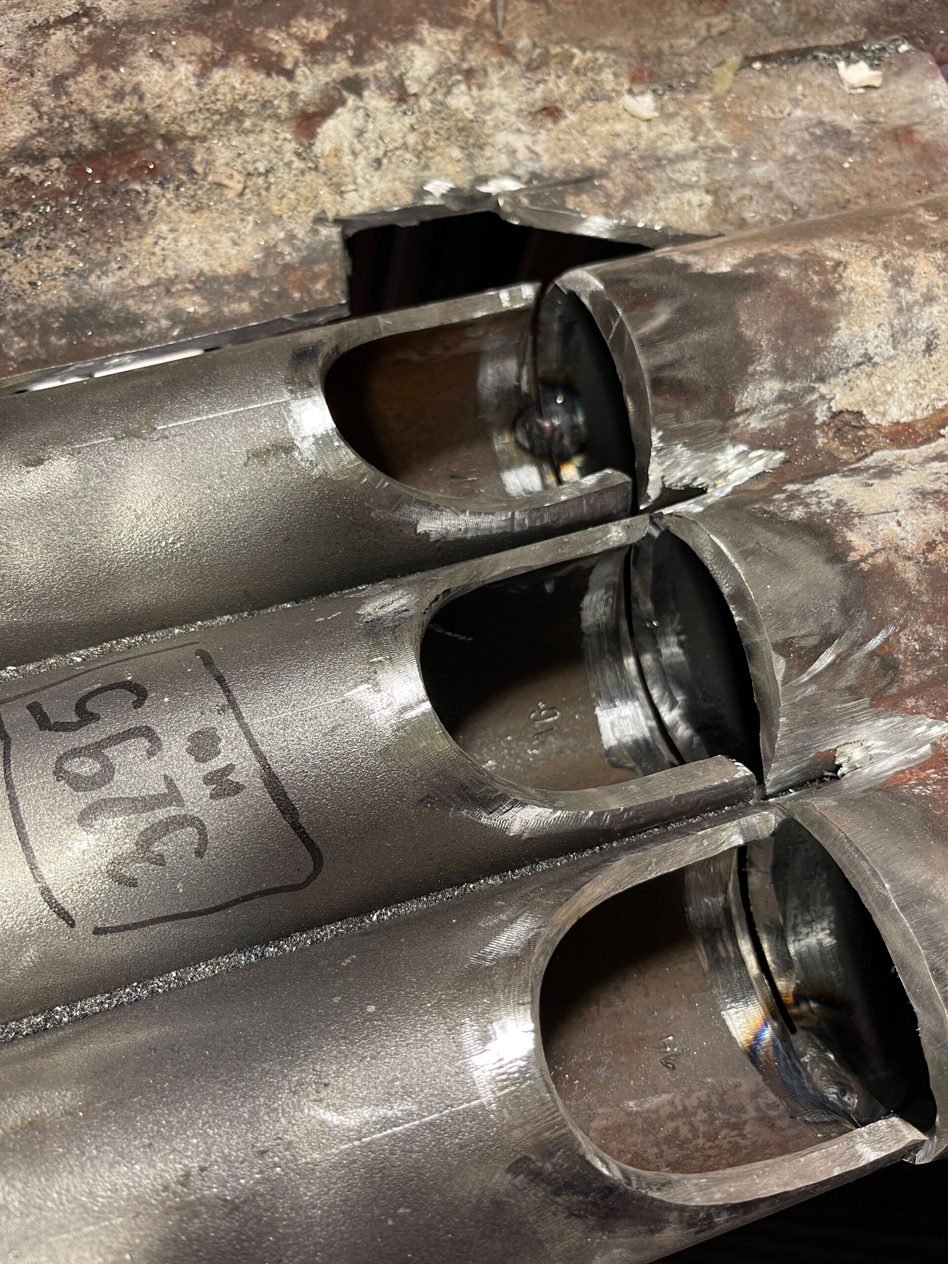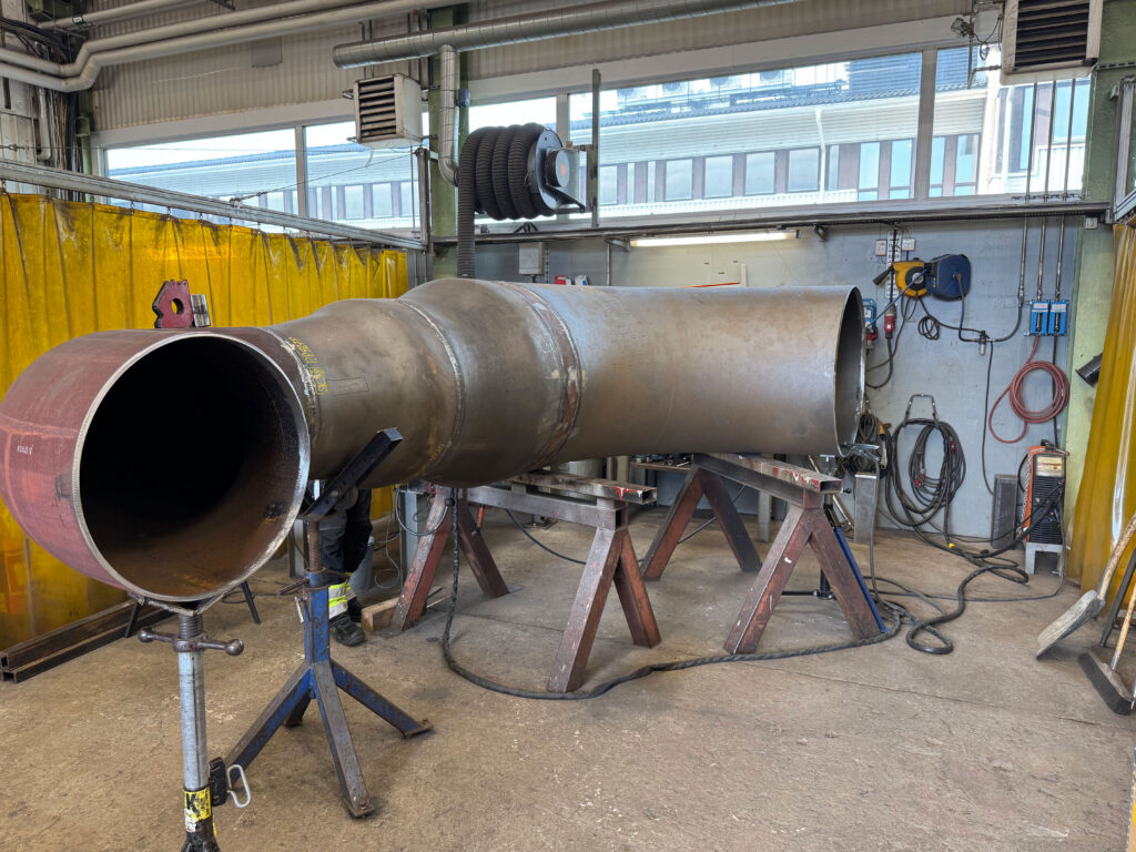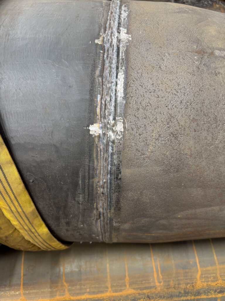Our team carried out welding work on pipes ranging from 400–1000 mm in diameter using carbon (black) steel and duplex stainless steel. For black steel, TIG welding was used for the root pass and manual arc welding for the fill. For duplex steel, both root and fill passes were completed using electrode welding. 10% of welds underwent X-ray inspection. All work was performed in accordance with the technical requirements for welding complex metals and strict quality control standards.