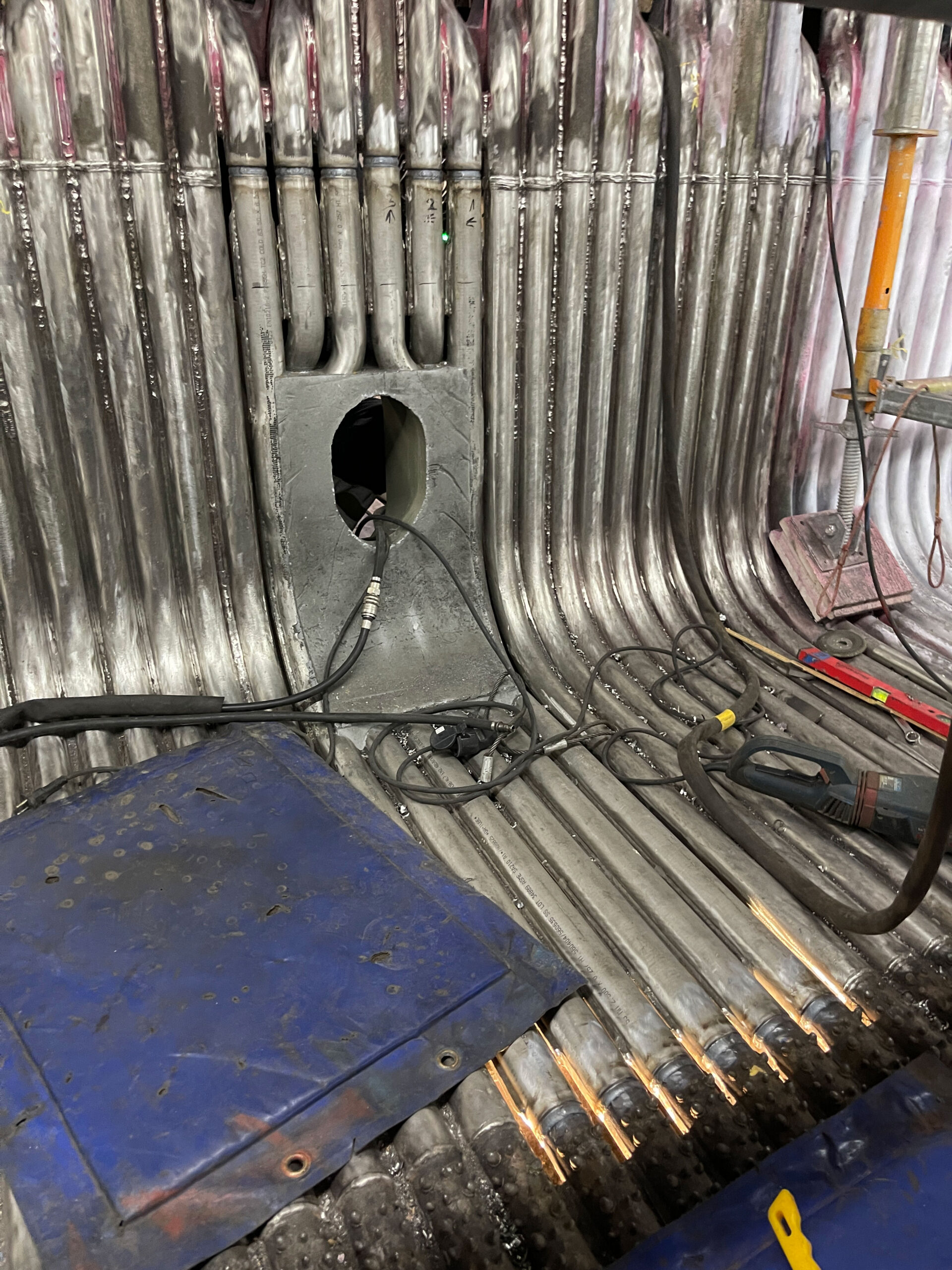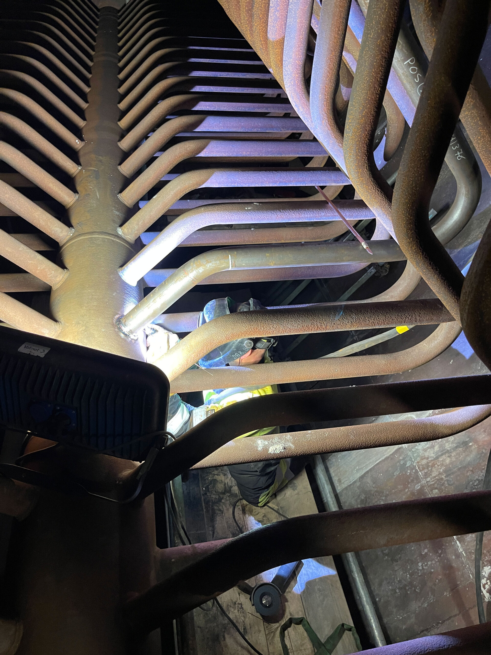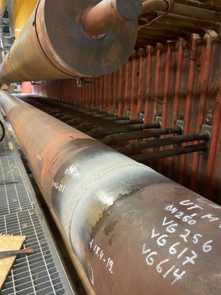 At an industrial site in Sweden, we carried out the replacement of the upper section of a boiler using chrome-molybdenum pipes. The project involved 110 butt weld joints, each subjected to X-ray inspection. A key challenge was the precise fitting and welding of pipes in very tight and hard-to-reach spaces with minimal clearance between elements. Despite the difficult conditions, the two-week project was successfully completed by a six-person team, meeting all quality, safety, and timeline requirements.