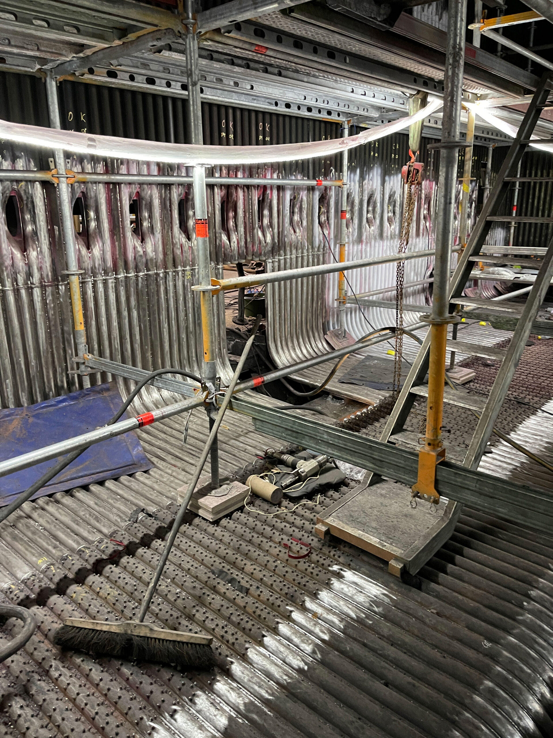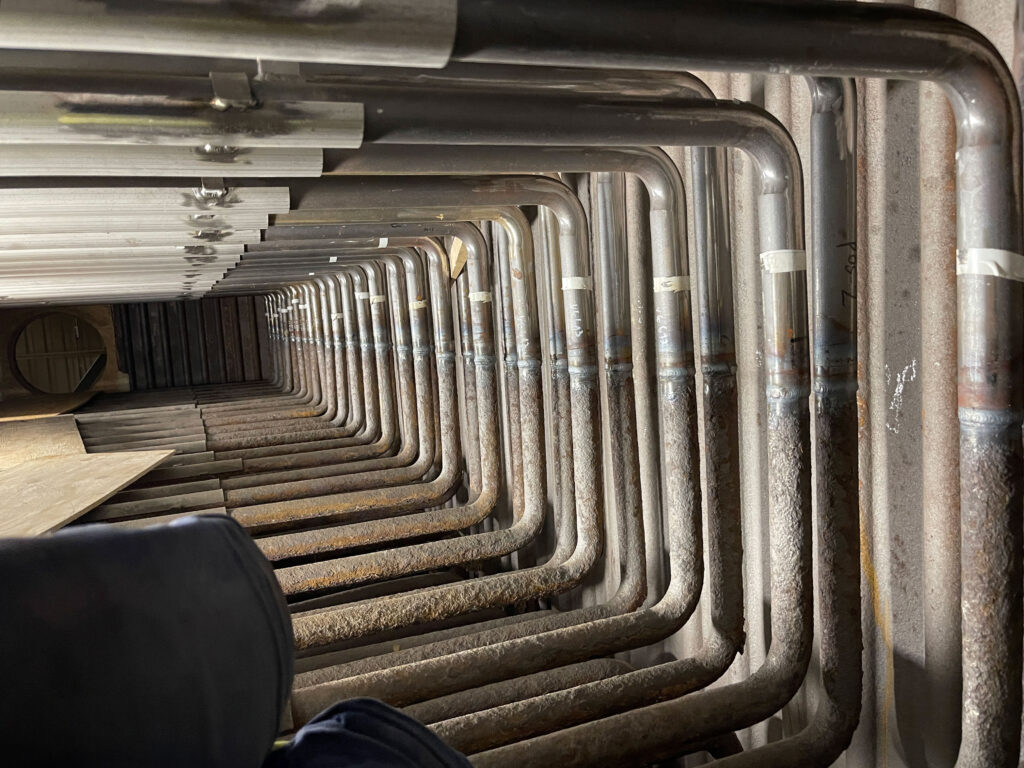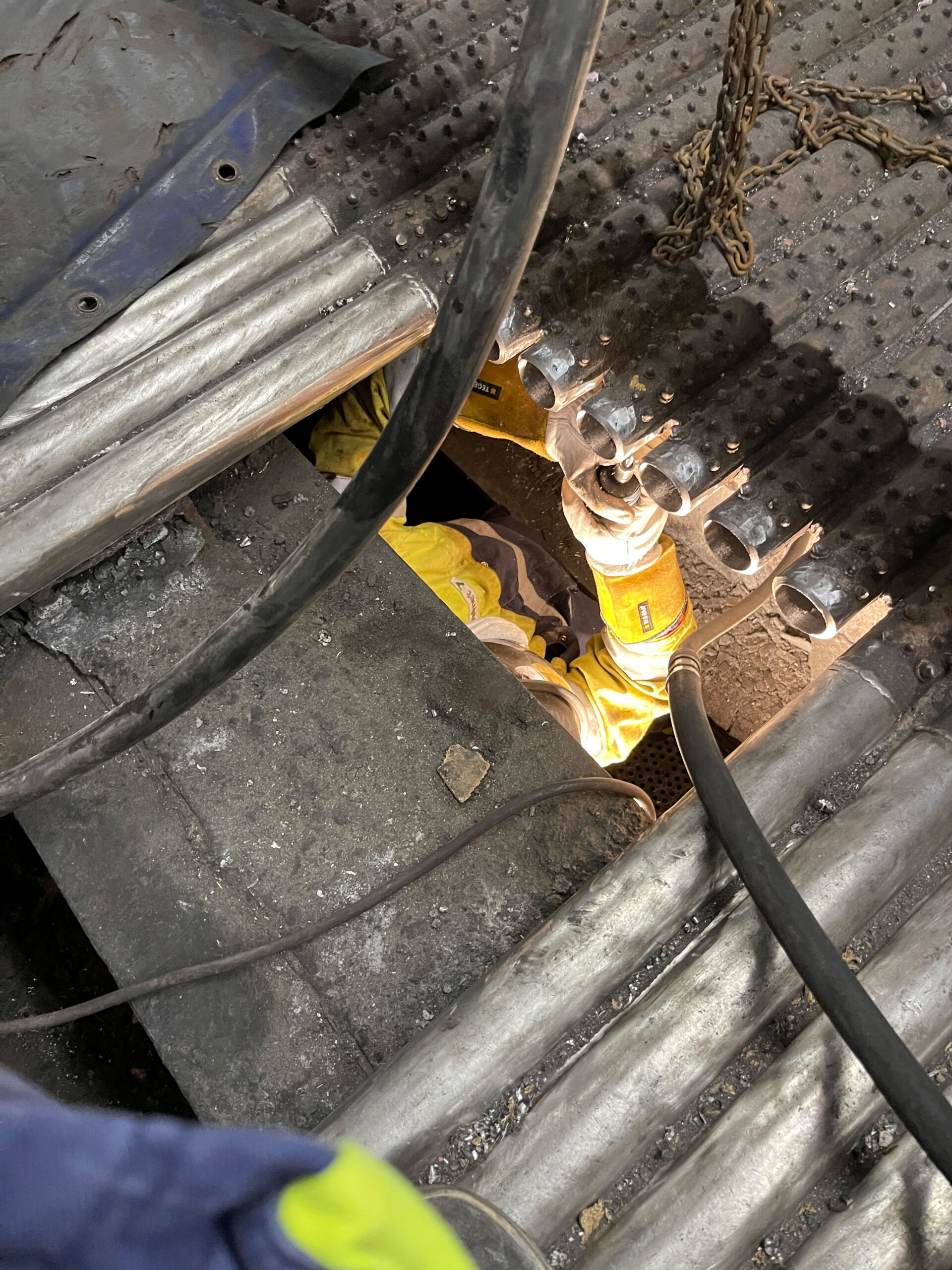 At an industrial site in Sweden, we carried out the replacement of the upper section of a boiler using chrome-molybdenum pipes. The project involved 110 butt weld joints, each subjected to X-ray inspection. A key challenge was the precise fitting and welding of pipes in very tight and hard-to-reach spaces with minimal clearance between elements. Despite the difficult conditions, the two-week project was successfully completed by a six-person team, meeting all quality, safety, and timeline requirements.